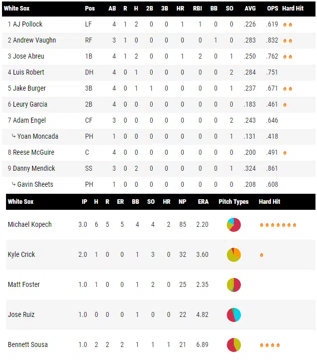 The White Sox may have found their new leadoff hitter for the foreseeable future as AJ Pollock started things off early and fast for the White Sox. He led off the game with a solo blast to give the White Sox a much-needed boost from that spot due to Anderson going down. Pollock also had a single later on in the game.
