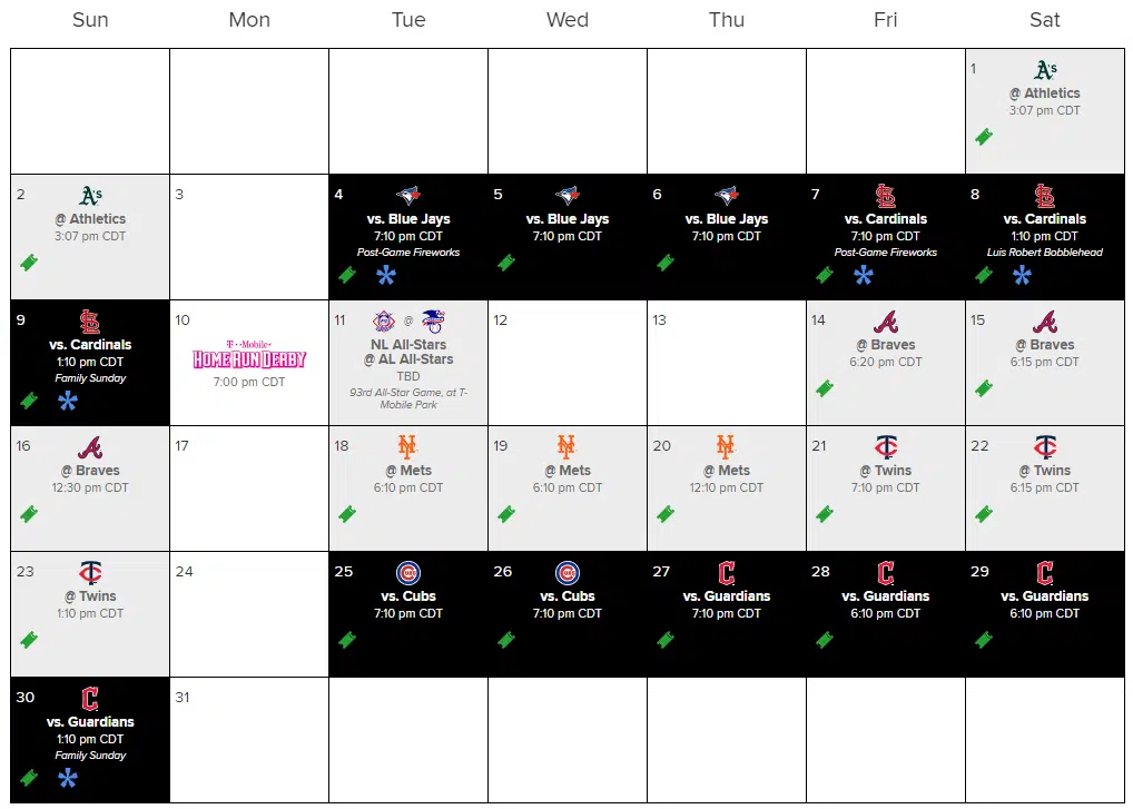 Major League Baseball will break for four days, July 10-13, to rest and host All-Star festivities in Seattle. The White Sox will hit the ground running with tough road stints vs. the New York Mets and the Atlanta Braves. Sixteen days removed from the previous game at The Rate, the South Siders kick off the crosstown series with two battles vs. the Cubs on July 25-26.