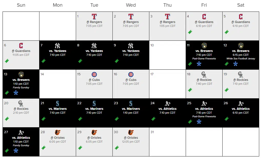 In welcome news to many Sox fans, the last regular season matchup vs. Cleveland in 2023 will happen early on August 6. Carlos Rodón returns to Guaranteed Rate Field for three games with the Yankees on August 7. A grueling stretch of 32 games in 34 days commences on August 18 on the road vs. Colorado. Sandwiched by two off days, the Crosstown Cup concludes at Wrigley Field on August 15 and 16.