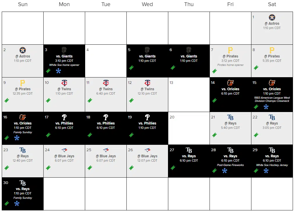 Now that full teams have reported to Spring Training across the league, Opening Day is under six weeks away! For the White Sox, that means a trip to Houston to square off against the reigning World Series champions and their new first baseman, Jose Abreu. Yet there are many other important details to note about the season schedule in the meantime.