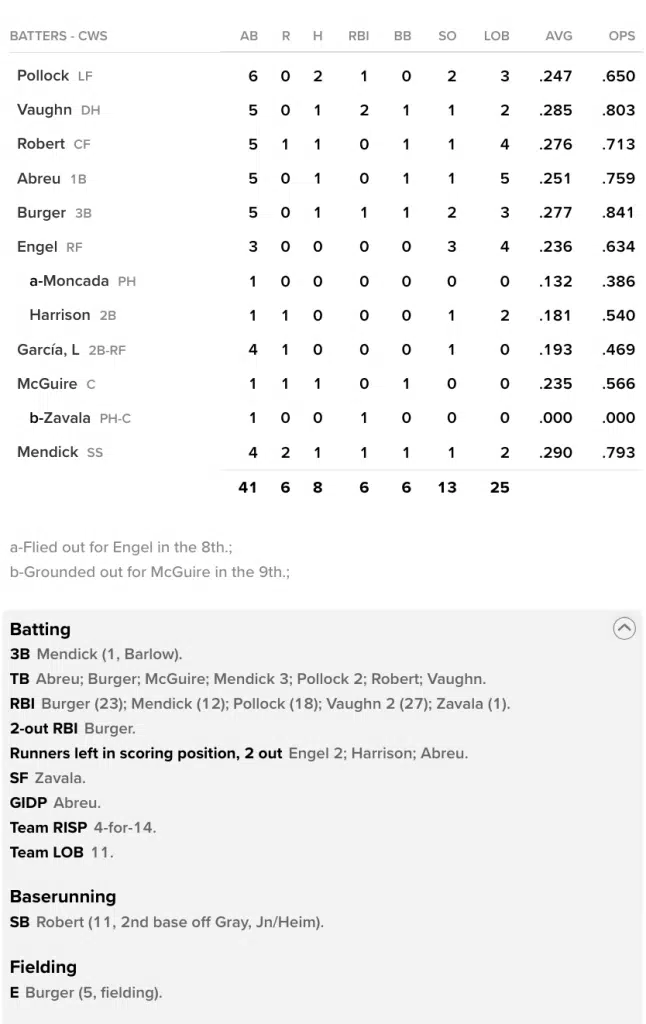 White Sox Scoring Recap:
