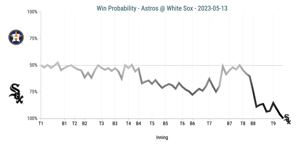 On the mound, Dylan Cease looked like himself for the first time in awhile for the White Sox, throwing six scoreless innings to continue his season dominance of Houston. He walked two and struck out five Astros’ hitters, in what he would likely describe as a vastly improved outing compared to recent ones. He turned the ball over to Reynaldo Lopez, who struggled in his 0.2 innings of work, and then to Joe Kelly and Kendall Graveman. Kelly allowed his inherited runner to score on a high chopper, but looked overall solid in his outing. Graveman saw some traffic on the base paths, but no one crossed the plate in his second save of the season.