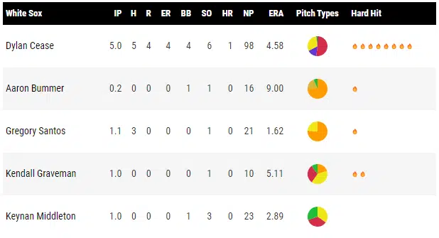 Dylan Cease: 5 IP, 5 H, 4 ER, 4 BB, 6 K