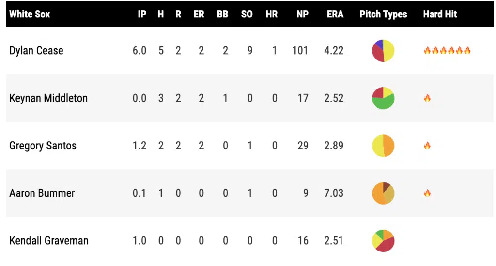 Dylan Cease: 6 IP, 5 H, 2 ER, 9 K