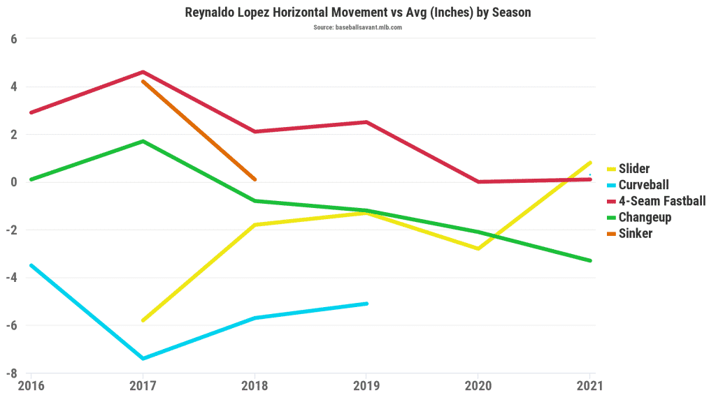 - Reynaldo Lopez, thus far in 2021, has accomplished all three of the things just laid out. He has improved life on his fastball by getting more “ride” and more movement on his slider with more “tilt”, both of which are a result of improved mechanics.