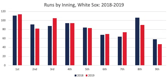 We now know that the first inning is a troublesome inning for A LOT of teams in baseball and that the Opener strategy has been a popular remedy to that. How do the White Sox fare in the first inning in recent seasons? You can probably guess, but I have the data anyway: