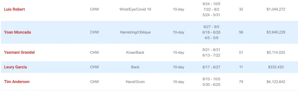 In 2021, the White Sox spent the sixth-least cumulative amount of time on the injured list, with a grand total of 1,224 days. That was highlighted primarily by injury time of 50 days or longer by Eloy Jimenez, Luis Robert, Nick Madrigal, and Yasmani Grandal. Ultimately, it equated to the ninth-least amount of money spent on IL players, with $17,649,819 allocated to wounded soldiers. Considering also that Chicago got all of their key players back before the playoffs, 2021 was actually a pretty favorable year health-wise for the team.