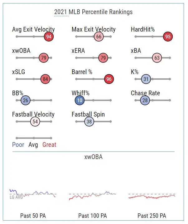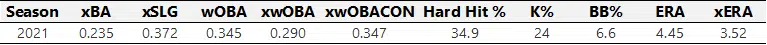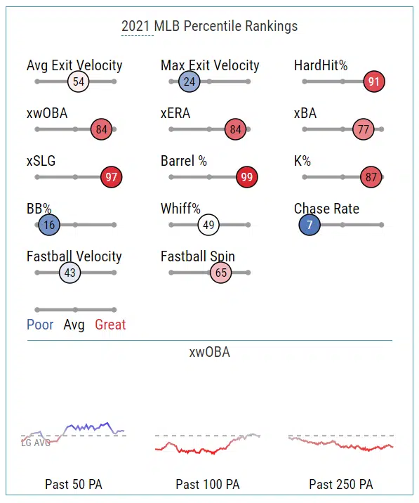 Sulser has posted a pretty quality season so far in Baltimore with a 32% strikeout rate with a bit of a high 10.9% walk rate. His 3.06 ERA and 2.97 FIP show his talent level is true to where he’s been performing this year and based on his BaseballSavant scorecard, he has pretty solid expected statistics as well.