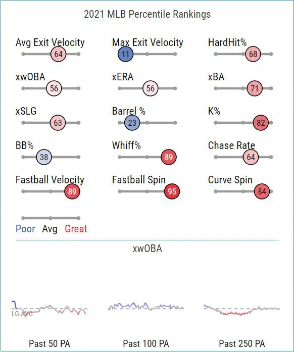 - CSW% (Called Strikes + Swing/Miss): 23rd (29.8%)