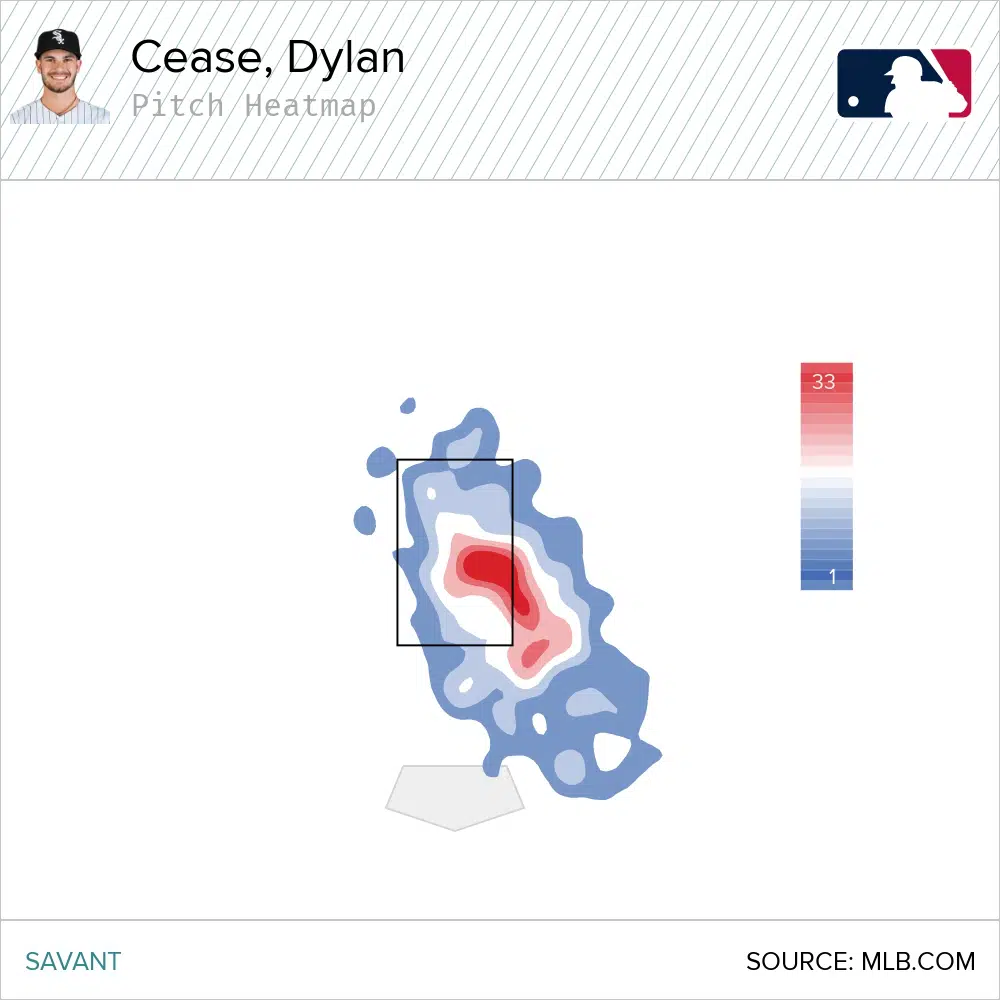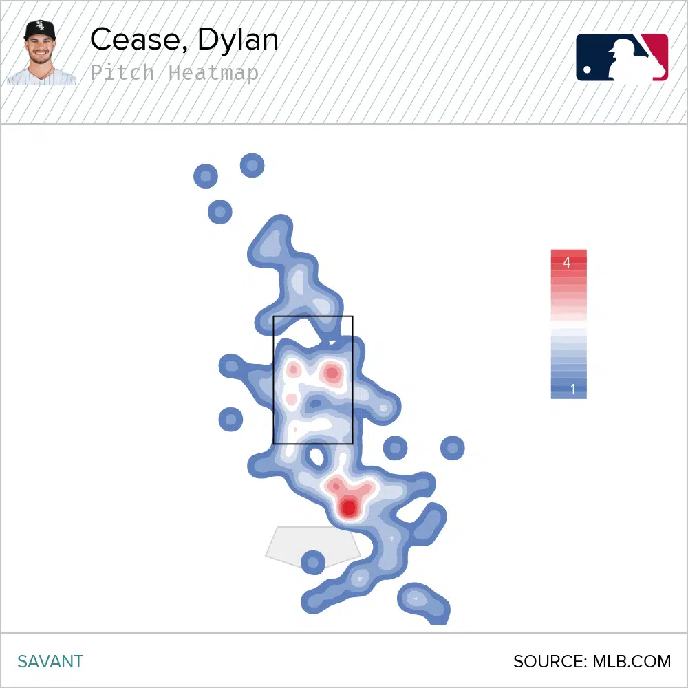 - Cease’s changeup is only going to continue to get better if he can more consistently locate it at the bottom of the zone.