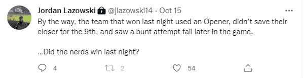 In the playoffs, all teams are good and talented. Having the best players is not always enough. When your opponent also has excellent players, you need to distinguish yourself in order to succeed. No matter how talented this core is for the White Sox, they will never win a World Series thanks to managerial limitations. The organization needs to maximize the talent of their players and right now are seemingly unwilling to do so.