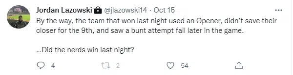 There are other little details that I think the White Sox could do better if they embraced analytics more and played the game the winners are playing it. The Dodgers found success in the playoffs using Openers and not being stringent on when to use their closer.