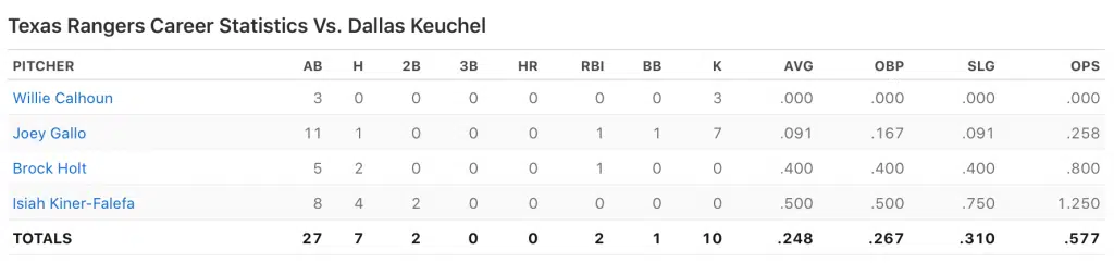 - Dallas Keuchel will look to improve upon his latest start in Boston against a Rangers team that has not had too much success nor experience against him: