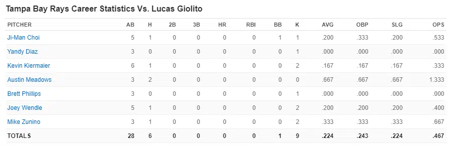 - Today will mark Lucas Giolito’s 100th career major league appearance and 98th career start. He will go up against a Rays team that he hasn’t had a ton of experience against – but one that he does have some success against.
