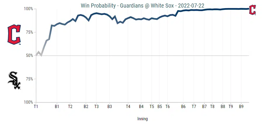 The Sox were stuck in an early 6-0 hole in this one as the Guardians had a maddening amount of batted ball luck, stringing together multiple hits with exit velocities under 80 mph as they built a comfortable lead early on. Lucas Giolito continued his up and down season tonight, only pitching three innings in what was a disappointing start to his second half. His final line: 3 IP, 9 H, 6 ER, 0 BB, 2 K.