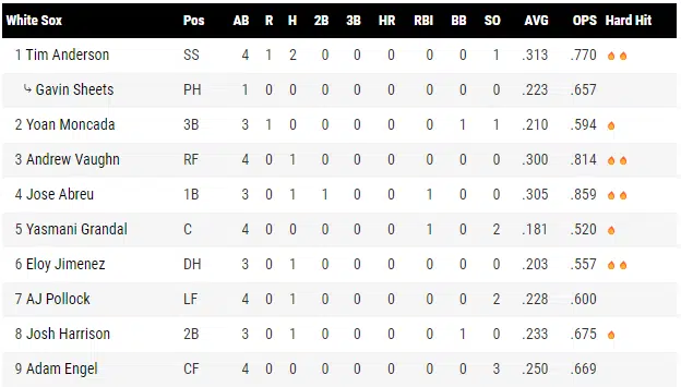 The Sox had multiple opportunities to get back into this game early on but just couldn’t get a big hit as they went 1-for-8 with runners in scoring position tonight.