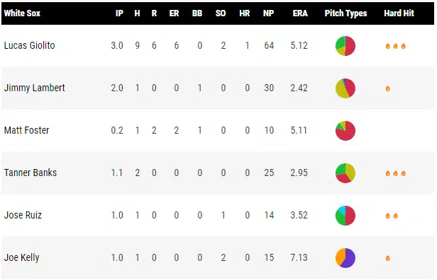 Lucas Giolito: 3 IP, 9 H, 6 ER, 0 BB, 2 K
