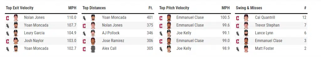 Yoán Moncada tilted the tides with a 3-run blast (102.7 mph exit velocity) in the top of the 3rd, scoring Leury García and Tim Anderson. The Sox appeared to be right back in the ballgame after Moncada’s home run and AJ Pollock’s RBI single in the top of the 4th made it 5-4. However, Cleveland’s arms would combine to blank the South Siders in the final five innings. After scoring four unanswered, the Sox saw the Guardians post four unanswered runs of their own, all coming in the bottom of the 5th. All eight Guardian runs in tonight’s affair were credited to Lance Lynn.