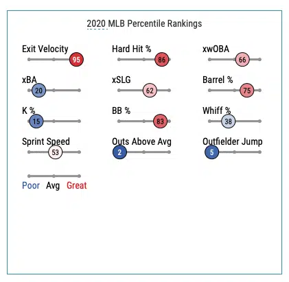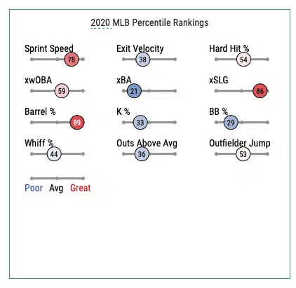 Upside: There’s an early pattern here – powerful corner outfield type players. Duvall returned to his old form in 2019 and 2020, posting two consecutive seasons with a wRC+ over 115 and a wOBA over .345. He even hit 16 home runs in just 57 games this season. Duvall’s BaseballSavant scorecard isn’t anything to drool over, but it shows a player who hits the ball hard and hits it out of the park.