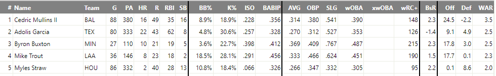 These numbers don’t quite do Buxton justice. Outside of the fact that he ended up having the same fWAR as Adolis Garcia despite playing in 53 less games, All Star voting basically begins after the first month of the season. These numbers above only reflect final numbers in retrospect and don’t reflect what a massive fWAR lead Buxton ended up having throughout the open voting process.