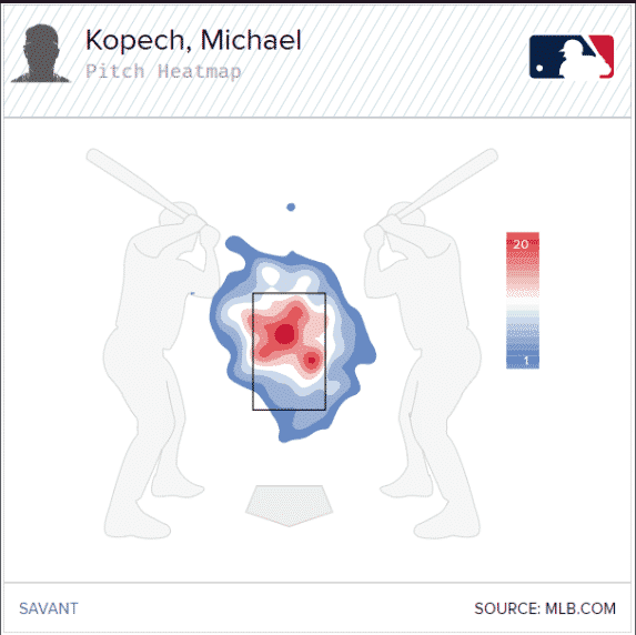 If for some reason you still have not been persuaded by my assessment of Michael Kopech, take a look at his Heatmaps pre and post hamstring strain. Here is what is looked like pre-injury: