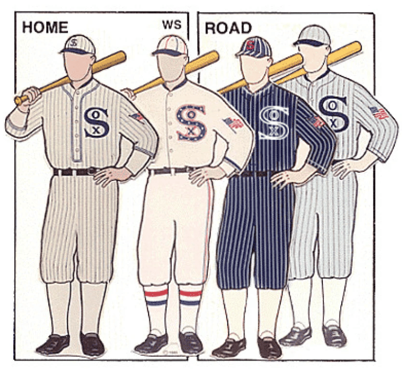 - Favorite White Sox Uniform: I’ve got what may be a hot take on this one. I’m going with these 1917 uniforms. Specifically, the Red/White/Blue ones. Get that logo on those plain white hats, and we’re in business right there.