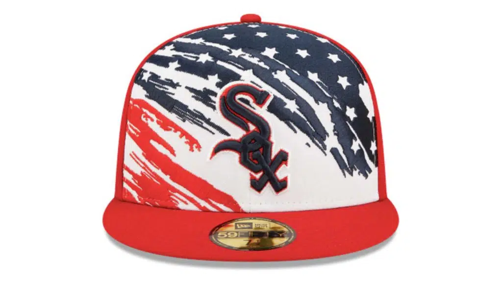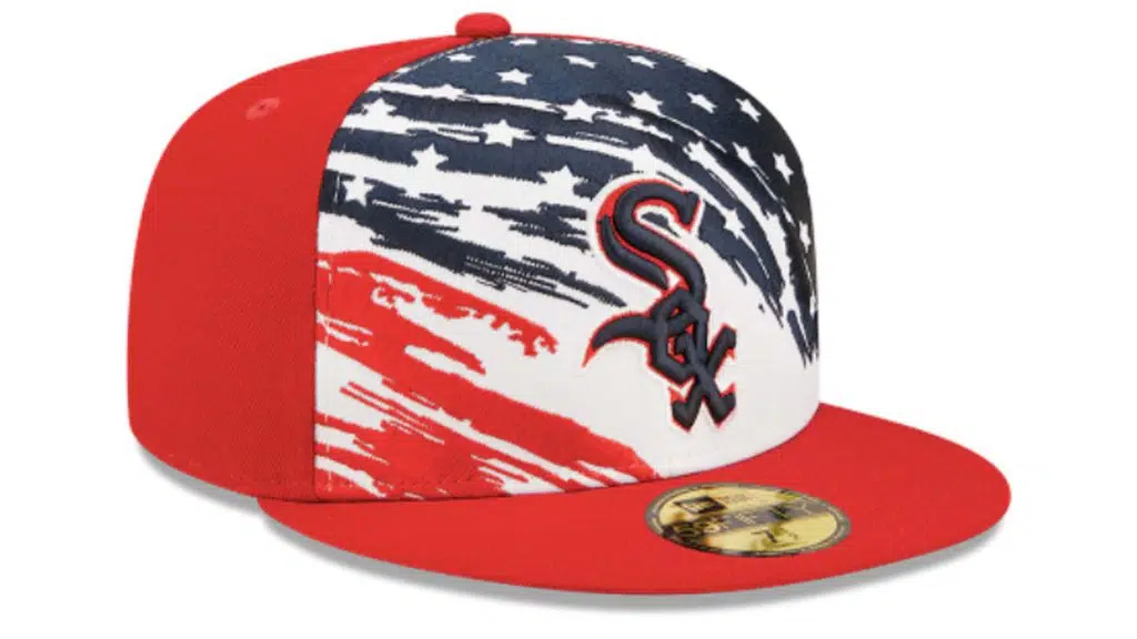 This year’s design is definitely an interesting one, to say the least. The American-flag pattern is spread across the white front panels in a paintbrush effect, while the team’s usual logo is recolored to red, white, and navy blue on the crown. The White Sox are one of 14 teams that elected to have a red-backing on their caps, while 16 other clubs will feature a somewhat cleaner-looking blue.