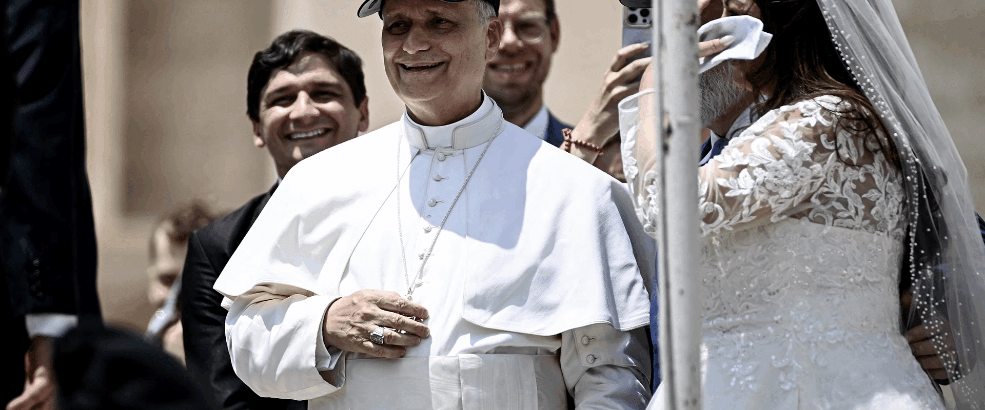 Pope Leo XIV wears a White Sox hat at the Vatican