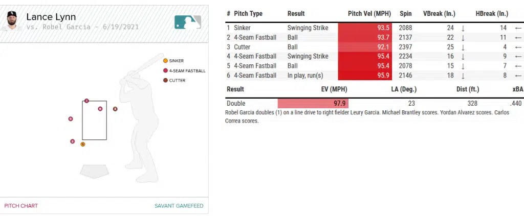 In the third inning, the game was hanging in the balance. The Astros had the bases loaded with one out and a 2-1 lead. After Lynn got the second out of the inning, Robert Garcia would lace a 3-2 fastball into RF, clearing the bases and giving the Astros a 5-1 lead.