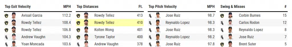 After dropping the first game of the series, the White Sox tried to tie the series in Milwaukee in game 2. It did not start off promising as Carlos Rodon gave up a home run on the first pitch and allowed another solo shot in the 2nd inning. Two errors led to two more runs scoring, and Carlos left the game down 4-0. Ruiz came in to relieve him and gave up a home run, walk, and four strikeouts over 2 innings. Reynaldo Lopez was called in for the 7th inning. He also gave up a home run and struck out four over 2 innings.