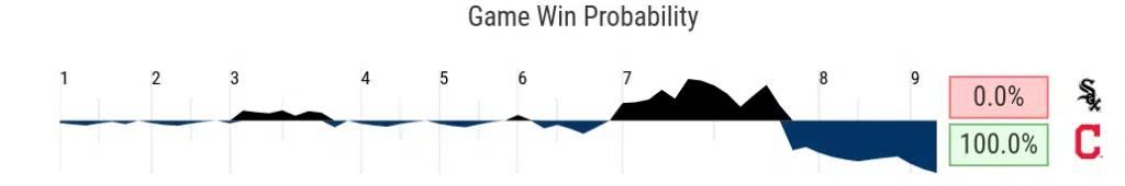 The White Sox led 4-1 with two outs in the bottom of the seventh inning, but gave up the lead and never recovered. Chicago falls to 34-23 and a full game back of first place in the division, while Cleveland improves to 33-24.