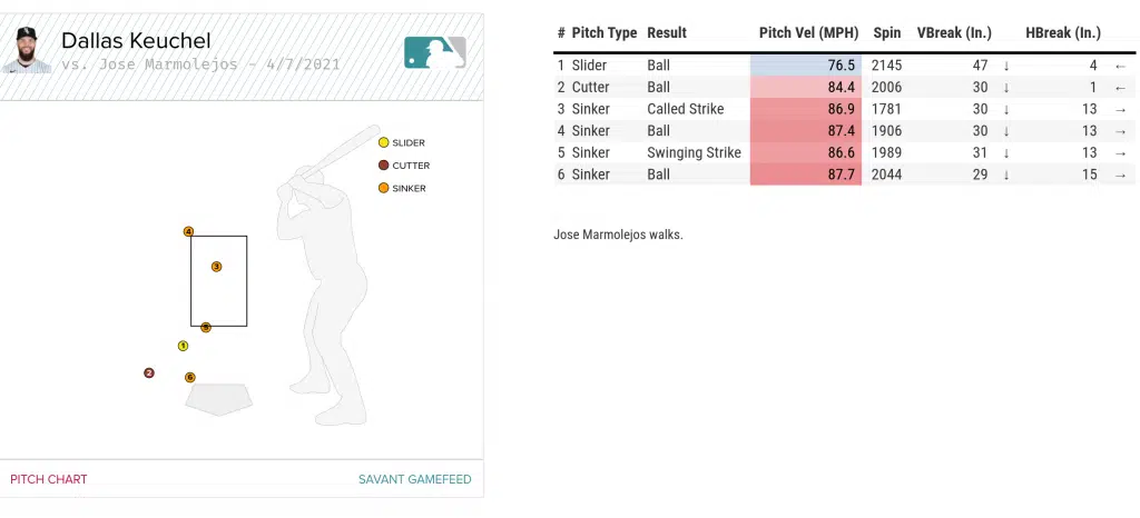Jose Marmolejos led off the bottom of the 6th inning with a walk against Dallas Keuchel. If this feels like an interesting choice for today’s matchup of the game, it is because the “dreaded leadoff walk” was especially dreadful today. It spearheaded Seattle’s seven-run outburst. While this walk in particular only lowered the White Sox win percentage from 85% to 80%, it clearly sparked what was the beginning of the end for the White Sox.