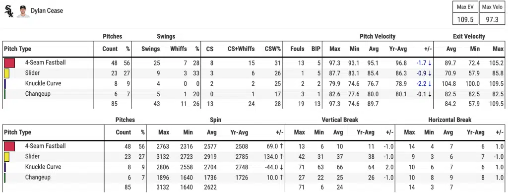 Dylan Cease: 4.2 IP, 6 H, 2 ER, 3 BB, 6 K, 11 Swinging Strikes