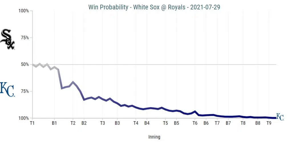 Steve Stone referred to it as a “dead arm” and Rodon most likely needs a little rest to get it back to full strength. His velocity was down early and the Royals took advantage of it. Salvador Perez built on his game-tying homer from last night when he hit a two-run shot to center in the bottom of the first frame today.