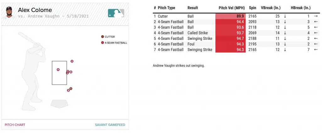 Bottom 7 – 2 Outs: Andrew Vaughn vs Alex Colome