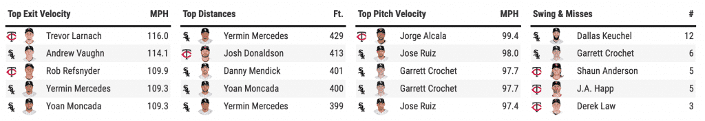 With Jose Abreu sidelined for the entirety of the Twins series this week, the White Sox were going to need somebody else to step up. The offense stepped up in a big way, recording 16 runs on 18 hits. Everyone in the starting lineup reached base, with Yasmani Grandal (0-for-0, 4 BB, SF) the only starting offensive player that didn’t record a hit.