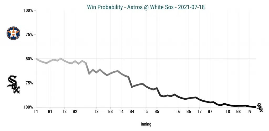 Though the White Sox were in control most of the game, the seventh inning brought an opportunity for insurance runs. After Danny Mendick led off the inning with a single, Tim Anderson move him over with a groundout. Three pitches later, Adam Engel gave the White Sox an insurance run that they wouldn’t need, but felt good at the time.
