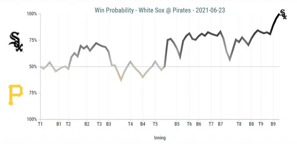 The solid month for Yasmani Grandal continues, as his 2-RBI double in the fifth inning was the difference in this ballgame. The White Sox scored seven runs in this series against Pittsburgh, and Grandal drove in five of them himself.