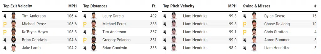Cease was effective this afternoon through 5.2 IP; losing his command a bit in the third inning and allowing two runs to score as a result were the only blemishes on a solid afternoon on the mound. He was followed by Ryan Burr, Codi Heuer, Aaron Bummer, and Liam Hendriks – some shakier than others – on the way to the victory.
