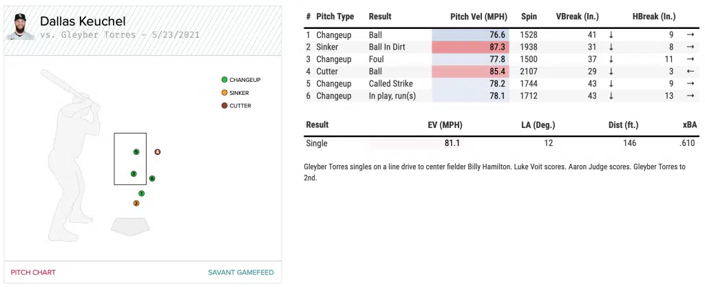 One of the key matchups of this game happened early on in this one. With two runners on and two outs, the White Sox elected to pitch to Gleyber Torres, who to that point had been responsible four six of the Yankees eight runs in the first two games of the series. Instead of pitching around Torres, Keuchel gave up a two-run single that would be