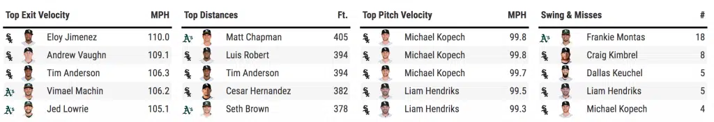 Craig Kimbrel came out and gave the White Sox fans a bit of a scare, putting runners on 2nd and 3rd with only one out in the 8th, but managed to slam the door shut and bring out the Aussie and former Athletic, Liam Hendriks, who brought a lot of anger and hostility to the mound, and struck out all three batters he faced.