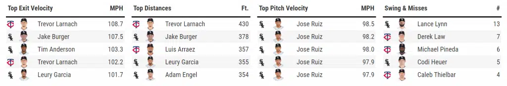 Lance Lynn was excellent on the mound, battling some control issues in the mid-innings to cover six strong innings. He was followed by scoreless outings from Ryan Burr, Codi Heuer, Garrett Crochet, and Jose Ruiz.