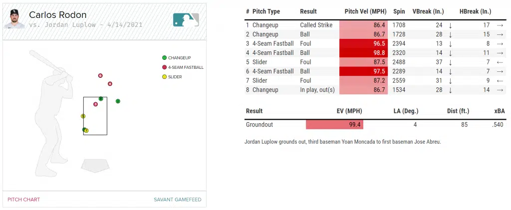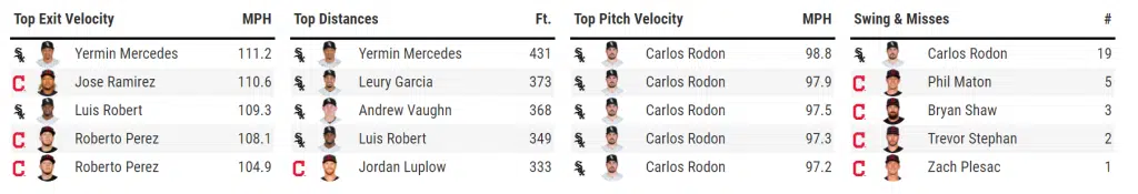 Rodon was essentially perfect, and it was ultimately the tip of Roberto Perez’s toe that became the only thing that came between Rodon and perfection. Aside from the blank hit column on the Indian’s side, Rodon’s velocity was also catching eyes. After sitting 96 for the majority of the game, he bumped it up and hit the 99 MPH mark after going north of 100 pitches.