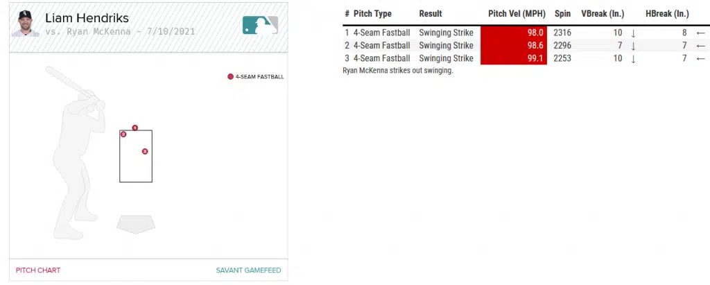 Jose Ruiz came in for the 8th to get some work in and was not very sharp. After giving up a run and loading the bases, Liam Hendriks was brought in to relieve Ruiz and control the damage. He came in and promptly dealt with McKenna on three fastballs to leave the bases loaded and protect the five run lead.