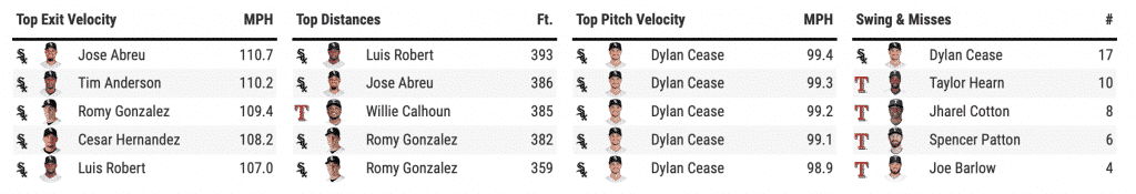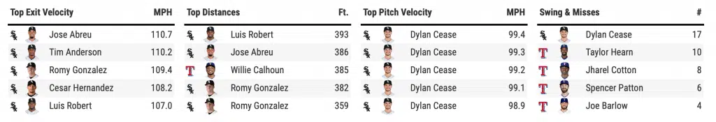 The White Sox went down to the new ballpark in Arlington and took care of the Rangers tonight. Dylan Cease struck out 10 batters in five innings of scoreless work, while the bullpen followed to keep the Rangers off the board all night. Ryan Burr, Aaron Bummer, Jose Ruiz, and Jace Fry combined for the scoreless bullpen effort.