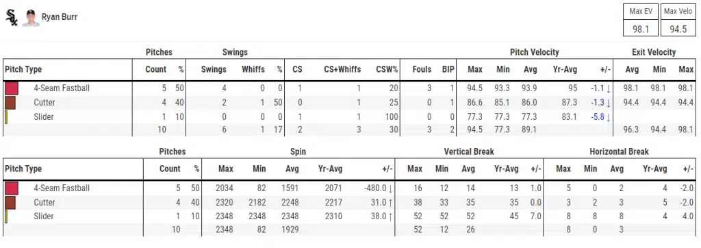 Ryan Burr was absolutely nails out of the bullpen in the tenth inning, no other way to really put it. Incredible effort from him to send the Sox to the bottom of the tenth with a chance to win it.