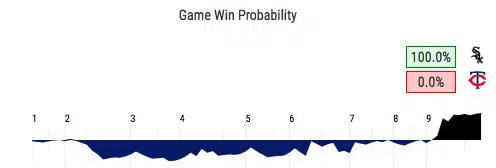 This game had several notable moments. However, Luis Robert’s RBI ground-rule double in the top of the ninth takes the honors. As a result of a dropped ball by Twins right fielder Max Kepler, Yolmer Sanchez pinch ran for Encarnacion, and Robert came through.