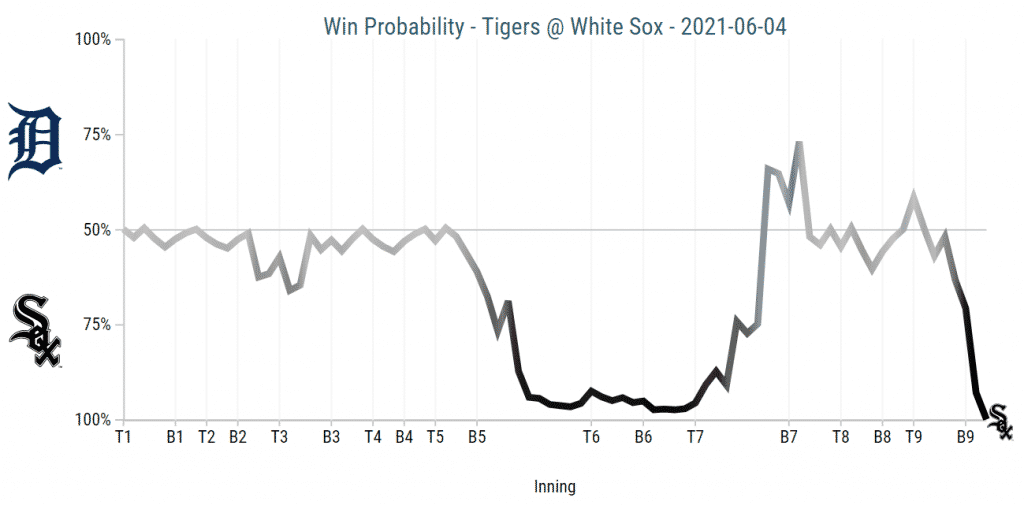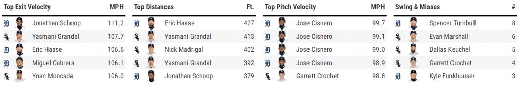 Apart from a Yasmani Grandal homer, Tigers starter Spencer Turnbull had shut down the Sox bats through four innings. An injury to Turnbull allowed the White Sox to get into the Tigers’ pen early. Bad Tigers defense created a five-run 5th inning off Kyle Funkhouser and fueled the good guys’ offensive output.