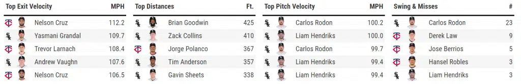 The matchup for the White Sox occurred any time Miguel Sano came to the plate today. Multiple times, the White Sox were in trouble and loaded the bases. Multiple times, Miguel Sano was unable to drive any runs in. Sano stranded nine baserunners today, and his struggles at the plate were a huge part of the White Sox’ win today.