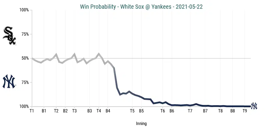 This is where I believe the game got out of reach for the South Siders today. Cease was taken out and replaced with Matt Foster with the bases loaded and one out in the fifth. Gleyber continued to kill the Sox in this series by tacking on two with a single here, making the game 5-0.